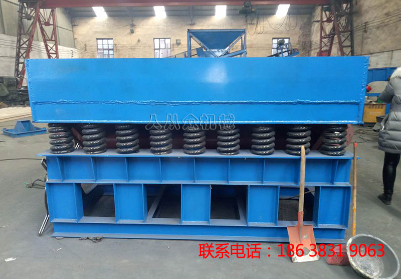 振動落砂機主要由框體和底座兩部分組成,全部采用焊接結構,振動部分框體由兩排彈簧支撐在機器底坐上,落砂機框體側面水平對稱安裝兩臺震動電機,激振力的合力與柵格的上平面垂直,形成一個單質體結構,促使砂箱與型砂分離,鑄件與型砂分離,以及砂團破碎,砂團**大塊度小于40mm,電機裝在外側,使用維修方便。
