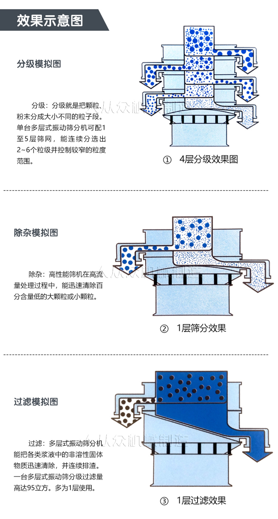 1.旋振篩工作效率高、壽命長(zhǎng)、功耗低,可篩分多種粉類、粘液類產(chǎn)品;