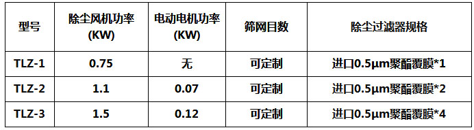型號 | TLZ-1等多種型號,可根據(jù)實(shí)際產(chǎn)能具體選型 |