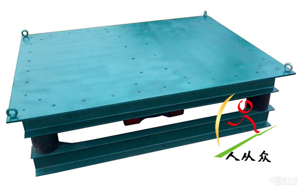 振動平臺主要用于物料的震實(shí),減少物料內(nèi)的空氣和縫隙,可以把顆粒、粉狀物料從散裝變?yōu)閴K狀或其他形狀等形式上的轉(zhuǎn)變。人防門振動平臺主要用于人防門造型時,通過振動電機(jī)帶動機(jī)體振動使砂充分緊實(shí)和充滿鑄型,人防門振動平臺的臺面與機(jī)座采用空氣彈簧連接,工作時噪音低,減振效果好。人從眾機(jī)械制造有限公司是一家專門生產(chǎn)人防安防防護(hù)門振動平臺,可按客戶要求設(shè)計(jì)。    人防門振動平臺結(jié)構(gòu):